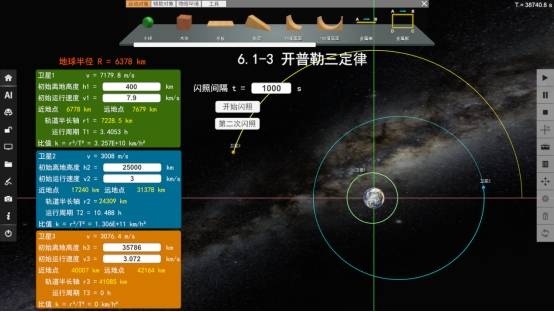 虚拟仿真的威力同样体现在宏观尺度的宇宙探索上。曾有教师应用矩道3D实验室进行“开普勒定律”和“卫星变轨问题”的教学。在虚拟太空环境中,学生可以自由调整行星轨道参数,直观观察面积守恒定律;能够通过拖动滑块为卫星加速,亲眼目睹其从圆轨道变为椭圆轨道,并深刻理解在不同轨道点上的速度与能量关系。这种将浩瀚宇宙“搬进”教室的体验,是任何黑板绘图或视频播放都无法比拟的。