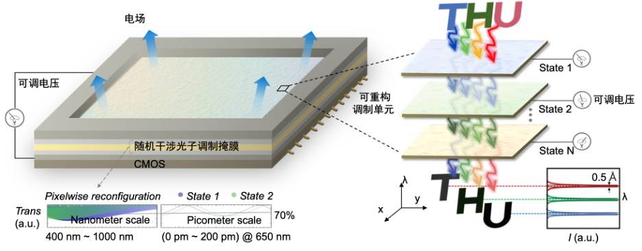 他们没走“物理分光”的老路子,而是玩了把“计算光学”的新花样——提出可重构计算光学成像架构,把传统的“筛面粉”变成“用不同筛网组合,一次算出所有粉粒”。具体来说,团队挖了铌酸锂材料的“电光重构”特性,就像给芯片装了个“智能滤镜”,能快速切换不同的干涉图案,再通过算法把这些图案“拼”出高维光谱信息。