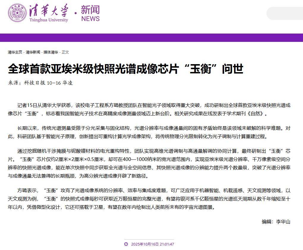 以前,天文观测要“普查”银河系千亿颗恒星的光谱,得花数千年,现在有了“玉衡”,十年内就能干完;机载遥感追个森林火灾,以前得来回飞好几圈,现在“咔嚓”一张快照,连每片树叶的燃烧温度都能精准捕捉。再有,未来智能机器人识别物体、医疗设备测细胞成分,甚至手机拍张照就能分析食物营养——这些以前得靠大机器的事儿,小芯片都能搞定。