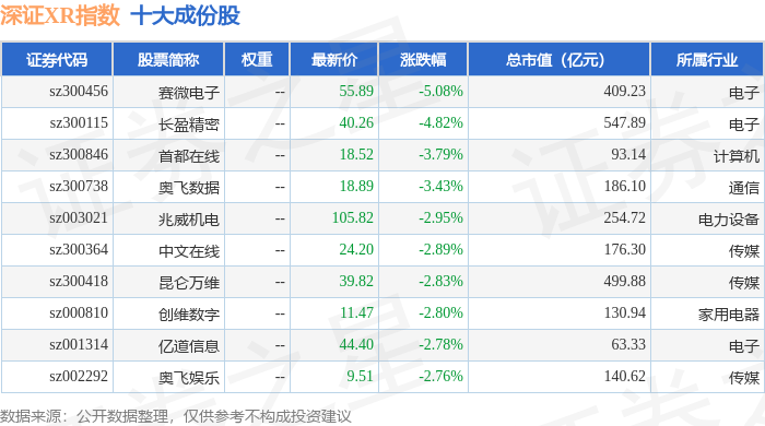 证券之星消息,12月11日,深证XR(970046)指数报收于2210.69点,跌1.54%,成交669.21亿元,换手率2.43%。当日该指数成份股中,上涨的有7家,蓝思科技以6.06%的涨幅领涨,下跌的有43家,赛微电子以5.08%的跌幅领跌。