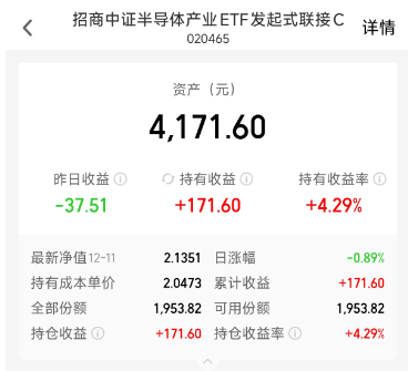 这一强劲增长主要由AI芯片需求爆发驱动,博通已与OpenAI达成100亿美元合作,并获多个大型AI客户百亿级订单,博通第四财季业绩的亮眼表现,为全球半导体行业注入强心剂,想把握机会的投资者可以关注招商中证半导体产业ETF发起式联接C(020465),目前已经收益4.29%了。