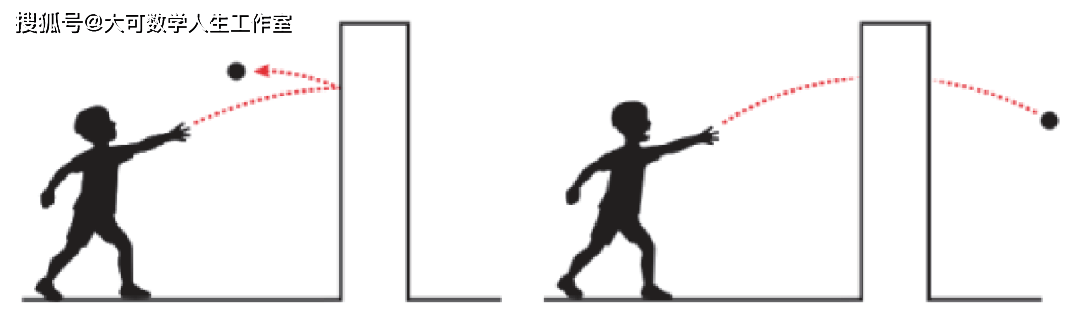 图2 左图表示经典世界中小球碰到墙壁会被弹回来,右图表示量子世界中粒子遇到势垒会有一定概率隧穿过去