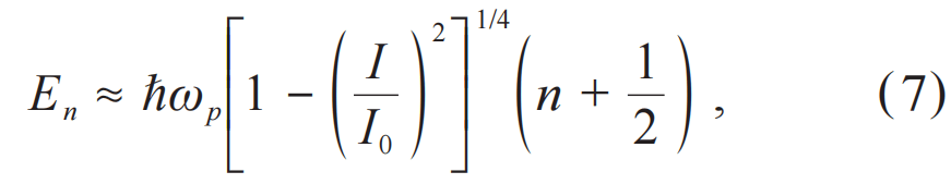 如果忽略耗散,即忽略电阻R,考虑上交流电压通过电容的电流,可以将图3所示的约瑟夫森结电流表示为: