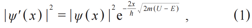 量子隧穿源于微观粒子的波动性。在量子力学中,微观粒子的状态由一个波函数ψ(x)描述,其中x代表其位置。波函数本身没有物理意义,但其模方|ψ(x)|2代表了在位置x处找到该粒子的概率。假设势垒的宽度为L、高度为U,粒子的质量为m、能量为E