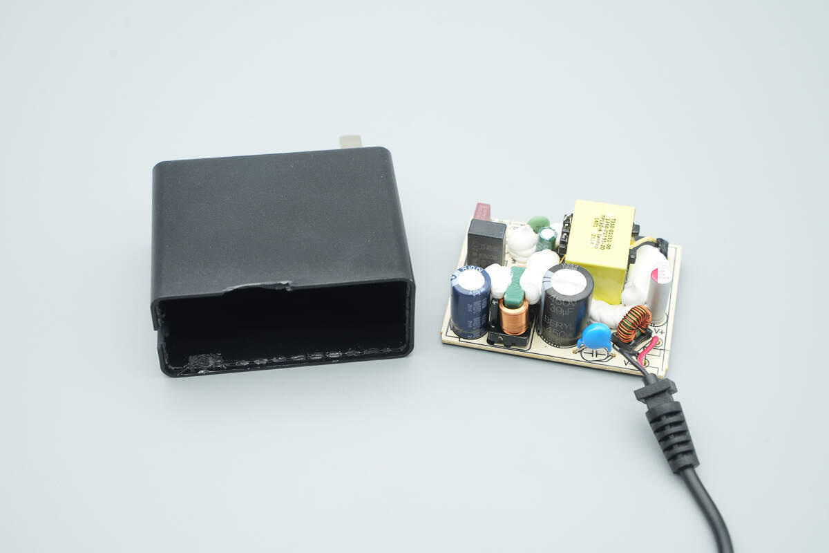 电源适配器输入端为接触式通电设计,PCBA模块取出比较方便。