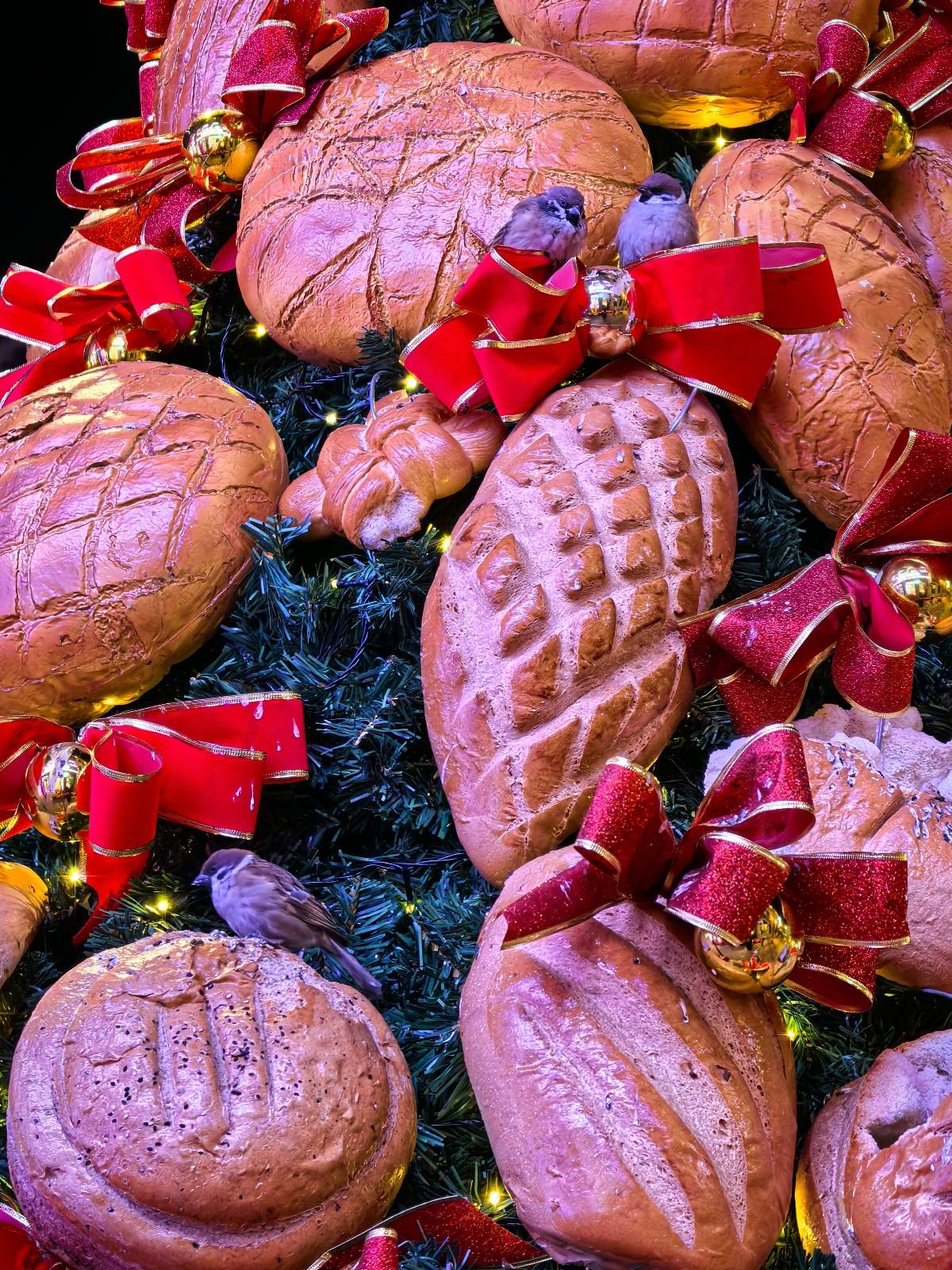 段海燕:从有设计想法到落地花了不到10天时间,最终于2023年12月23日左右完成,一共用了一百多个面包,其中不乏直径达40厘米的大面包。当时工厂一边加工面包,我们设计团队一边研究树的骨架,两边并行合作,用最快的速度将创意实现。