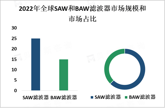 2022年全球SAW和BAW滤波器市场规模和市场占比