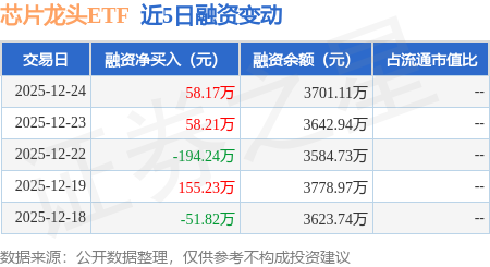 证券之星消息,12月24日,芯片龙头ETF(516640)融资买入373.29万元,融资偿还315.12万元,融资净买入58.17万元,融资余额3701.11万元。