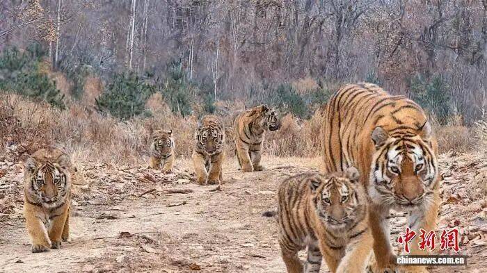 记者26日从东北虎豹国家公园管理局获悉,今年11月8日,在公园的珲春片区监测到一只雌性野生东北虎带领五只幼崽出现,这是中国首次拍到“六虎同框”影像。
