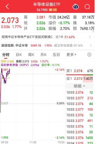 距离元旦仅剩1个交易日,今日存储芯片再度爆发,带动上游设备同步走强。热门半导体设备ETF(561980)今日大幅高开2%、目前上涨1.77%,连续3个交易日获资金净流入超5500万元。