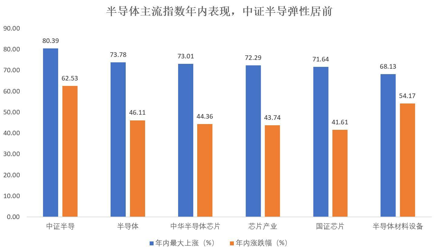 截至12月29日,中证半导2025年年内涨幅超过62%、最大上涨超80%,在中证全指半导体、中华半导体芯片、国证芯片等主流半导体指数中均位列第一,或在新一轮半导体上行周期中更具弹性。