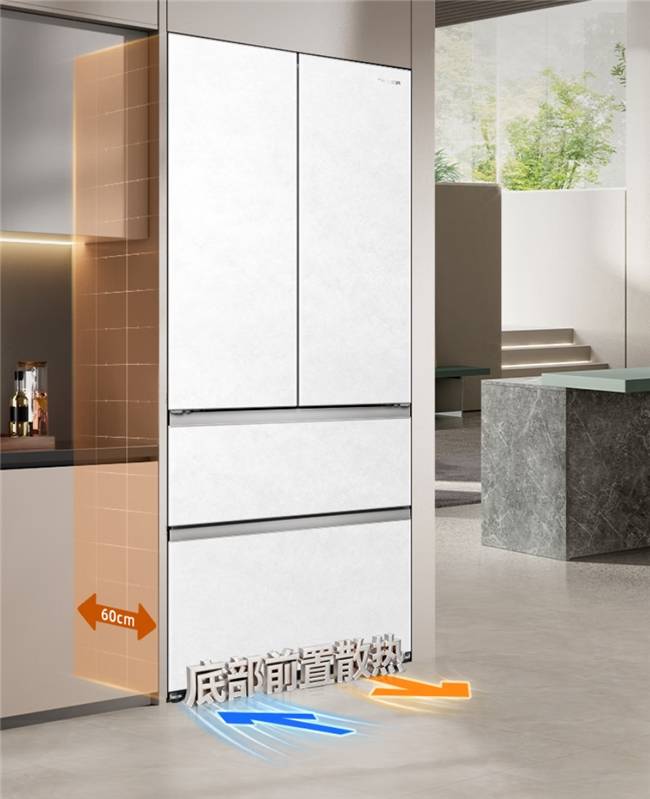 西门子嵌入式多门冰箱以“多维出风+无缝嵌入”见长。机身深63.6cm,底部散热无需预留空间,多维立体送风均匀覆盖每个角落,避免局部温差串味;双循环制冷让冷藏、冷冻独立控温,气味互不干扰。610L容量含独立变温室(-3℃微冻),玻璃面板耐油污,iQ500智能系统支持APP远程调温。白色机身简约百搭,嵌入式安装后厨房整洁度高,德系耐用性与智能体验并存。
