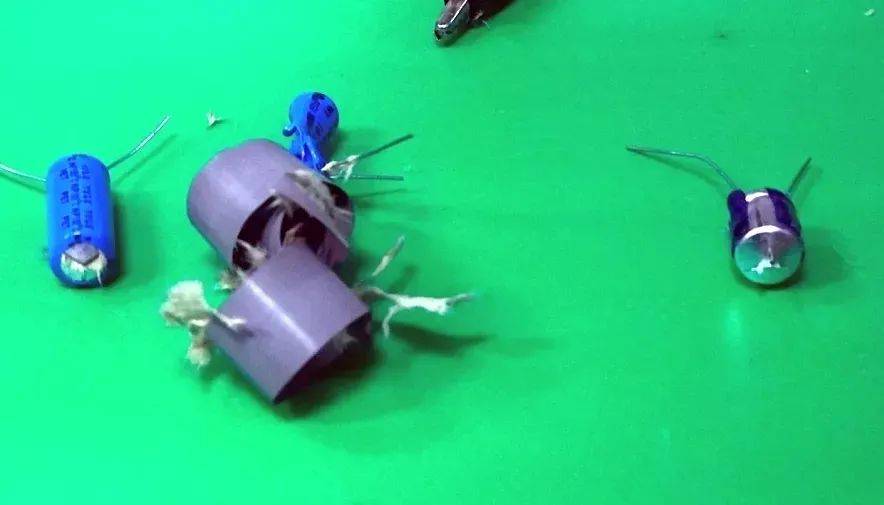 但是,有的电容在制作过程中,顶部的凹槽压制不合格,电容内部的压力会使得电容底部的密封橡胶被弹出,此时电容内部的压力突然释放,就会形成爆炸。