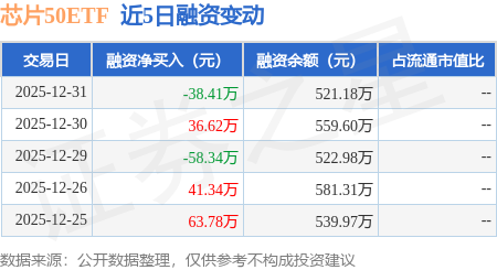 证券之星消息,12月31日,芯片50ETF(516920)融资买入72.11万元,融资偿还110.52万元,融资净卖出38.41万元,融资余额521.18万元。