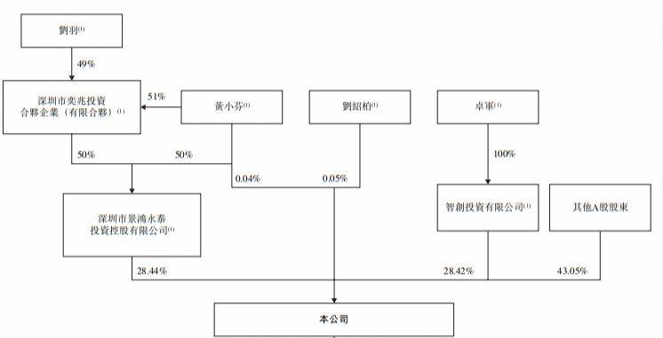 截至2025年12月26日,景鸿永泰、智创投资、奕兆投资、刘绍柏黄小芬卓军及刘羽为一致行动人士。他们合共有权行使560,846,175股股份所附带的投票权,约占已发行股份的56.95%。