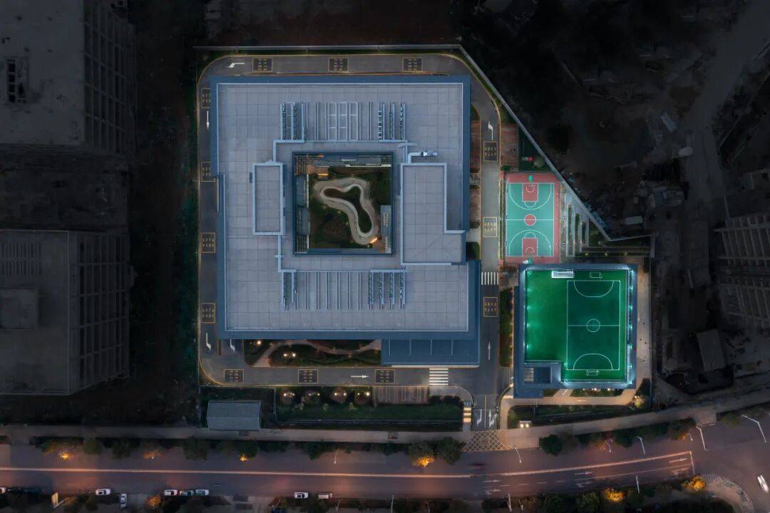 建筑出自JJP潘冀联合建筑师事务所之手。方案以绿色“芯片”能量为理念,采用回字形围合布局,中央敞开一座露天中庭。它仿佛处理器的心脏,向四周输送着无形的能量,激发着穿梭其中的人们的思考与对话。