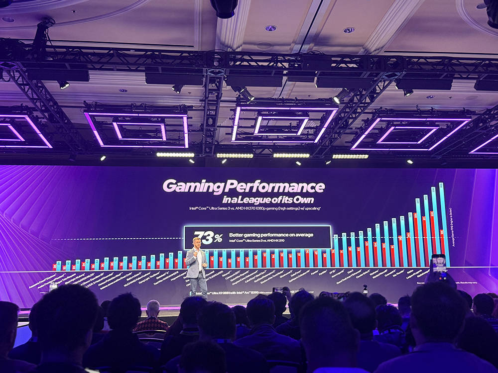 相比Lunar Lake,Panther Lake在游戏性能上提升了70%,在AI推理性能上提升了50%,让PC玩家能够在轻薄本上体验到接近独立显卡级的游戏性能。