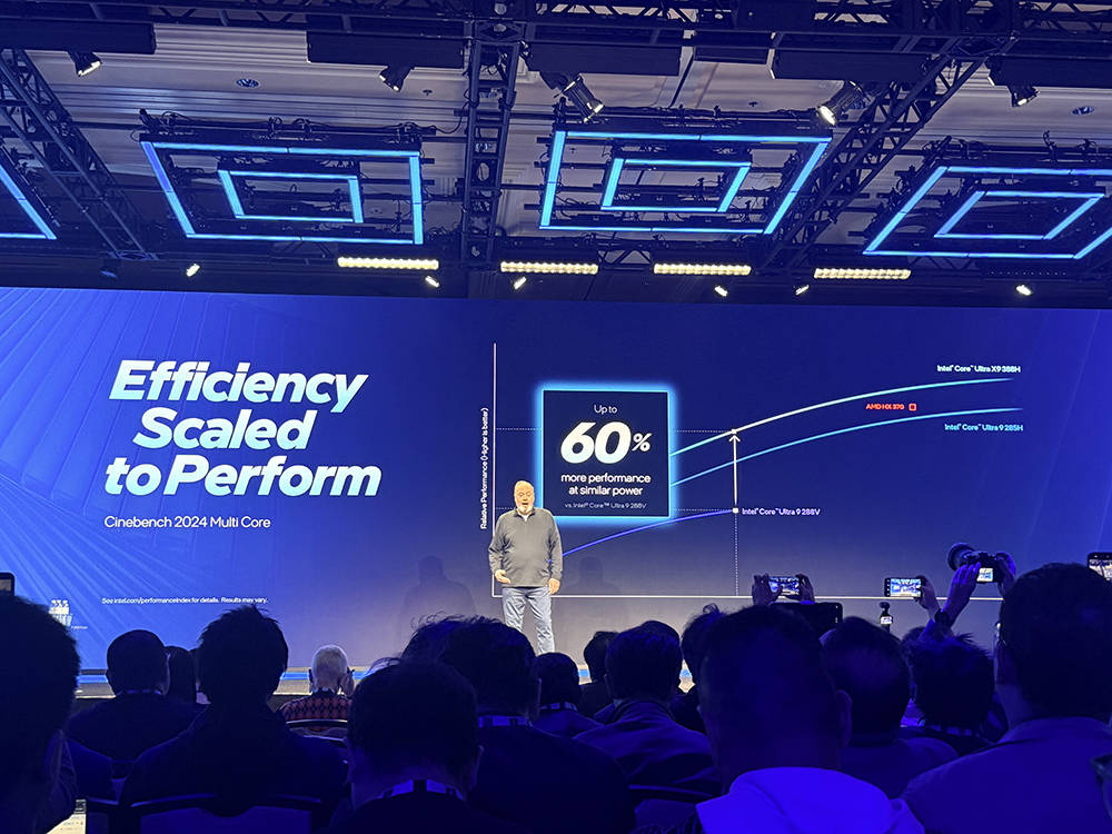 相较Lunar Lake,Panther Lake性能提升60%,即便在使用更少性能核(P核)的情况下,也比其此前性能最高的SKU更快、更高效。