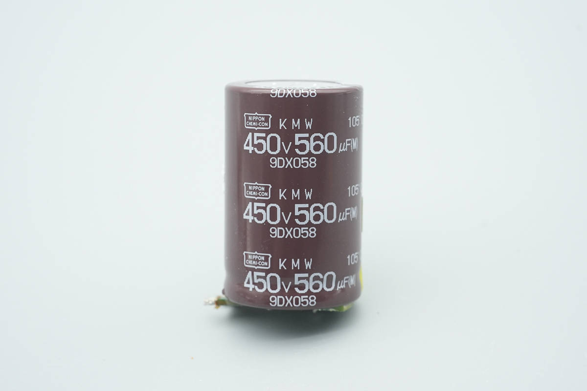 滤波电容来自贵弥功,为KMW系列小型化电解电容,规格为450V560μF。