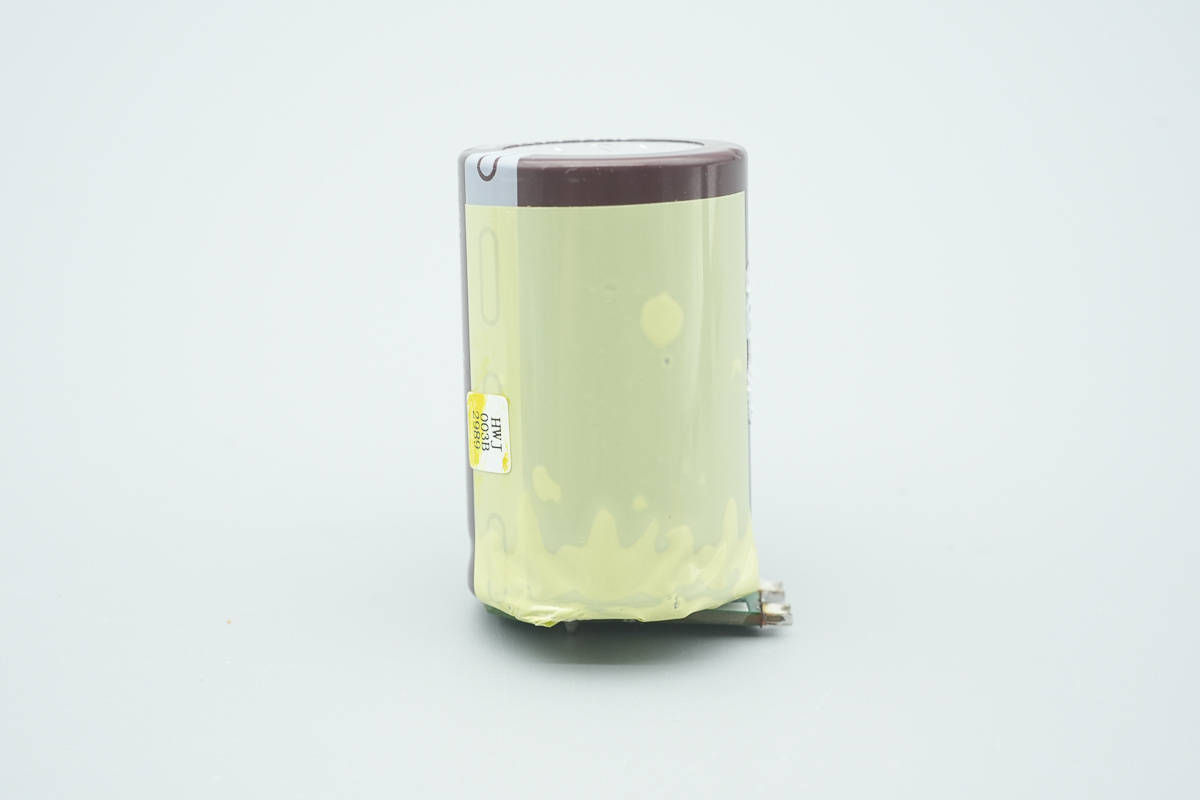 电容外皮粘贴胶带绝缘。