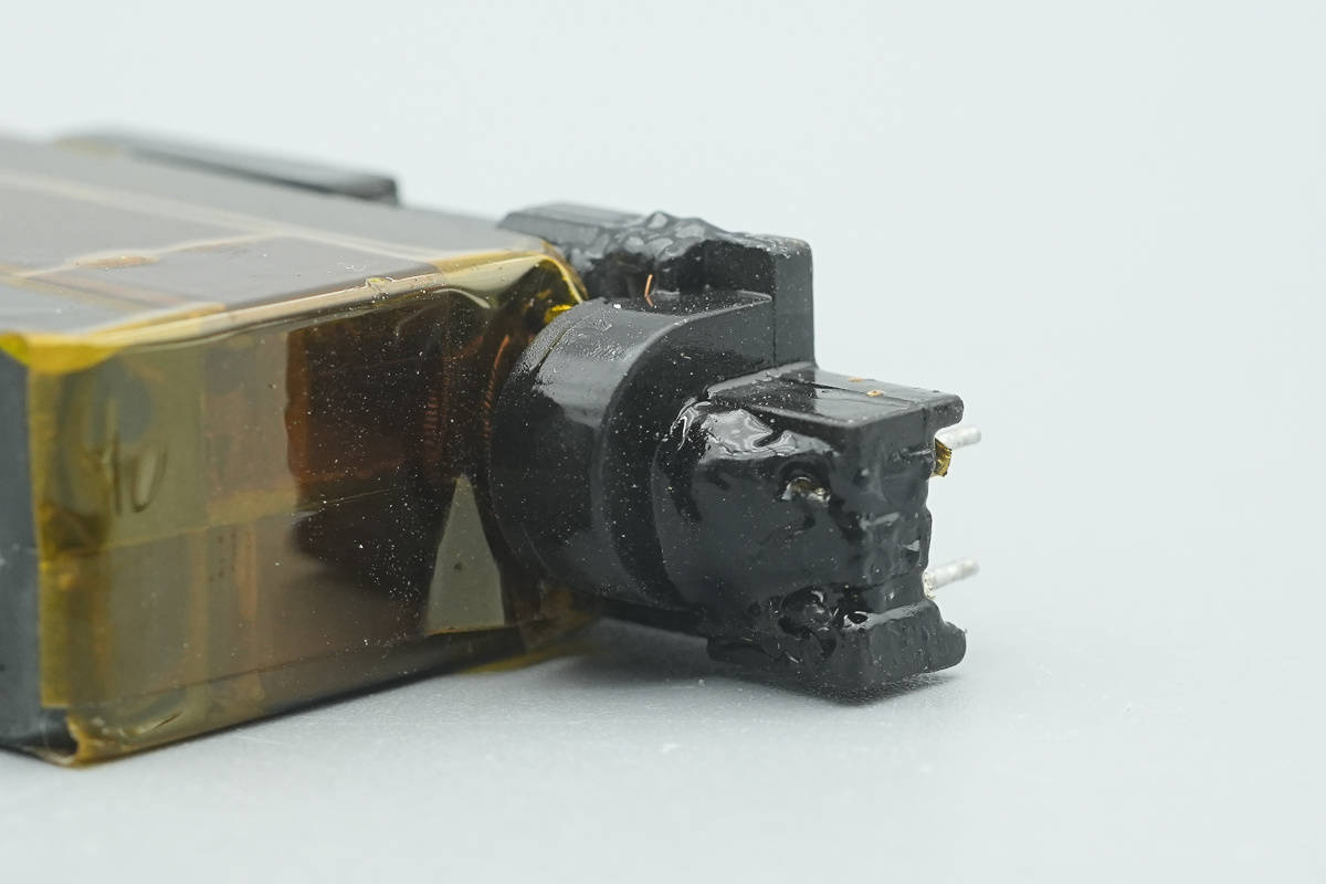 谐振电容两颗并联,并打胶加固。