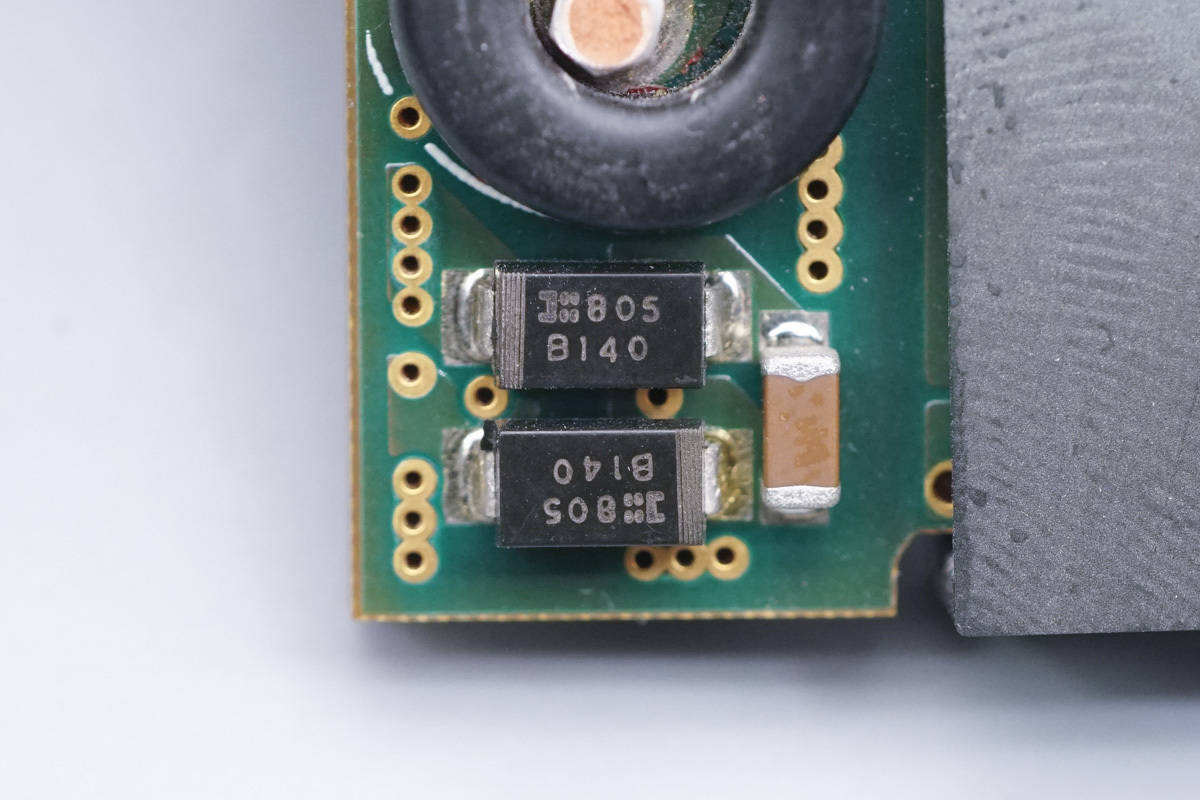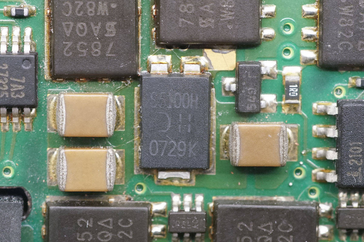 一颗肖特基二极管来自美台,实际型号为PDS5100HQ-13,耐压100V,耐流5A,同时该产品符合AEC-Q101车规级认证。