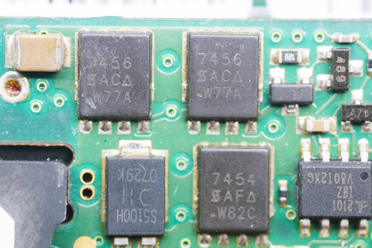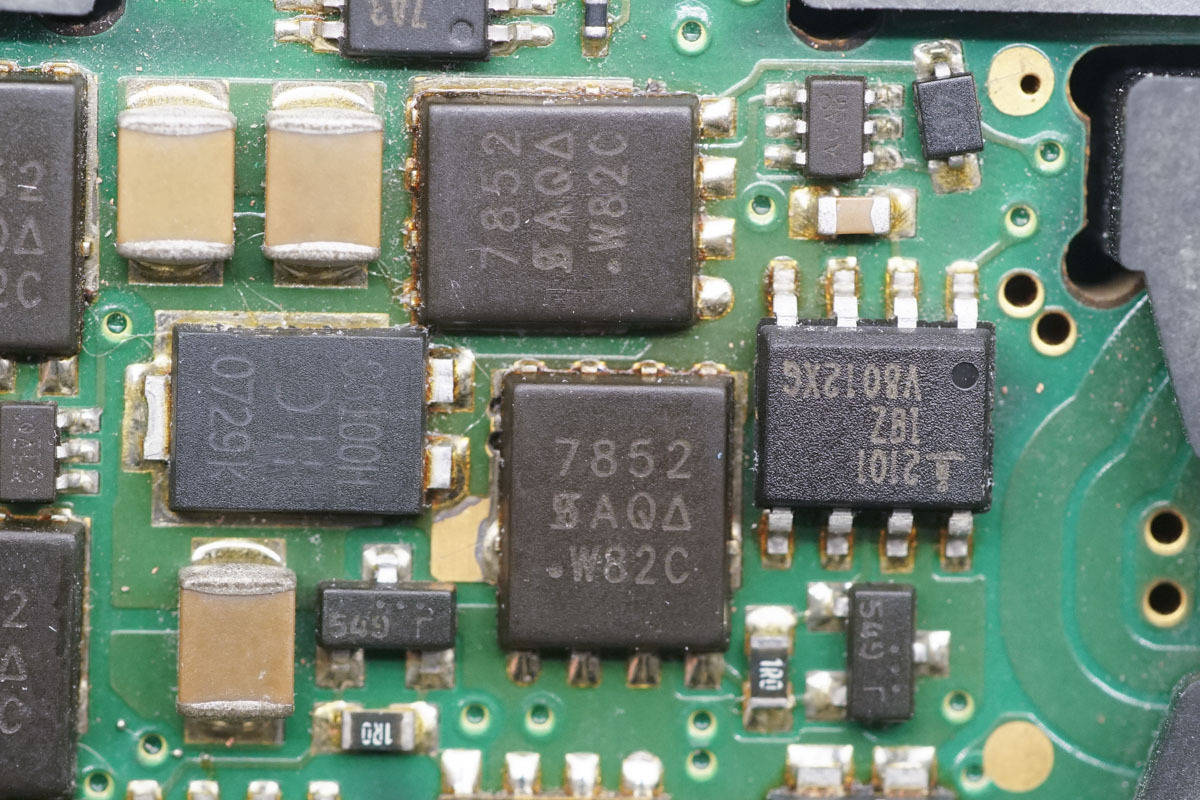 四颗NMOS来自威世,实际型号为SI7852DP-T1-GE3,耐压100V,导阻16.5mΩ。