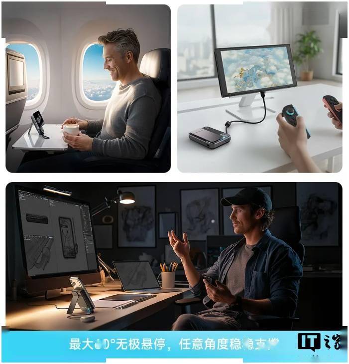 该移动电源还自带支架,可以悬停放置,搭配手机磁吸,就能立在桌面上充电。