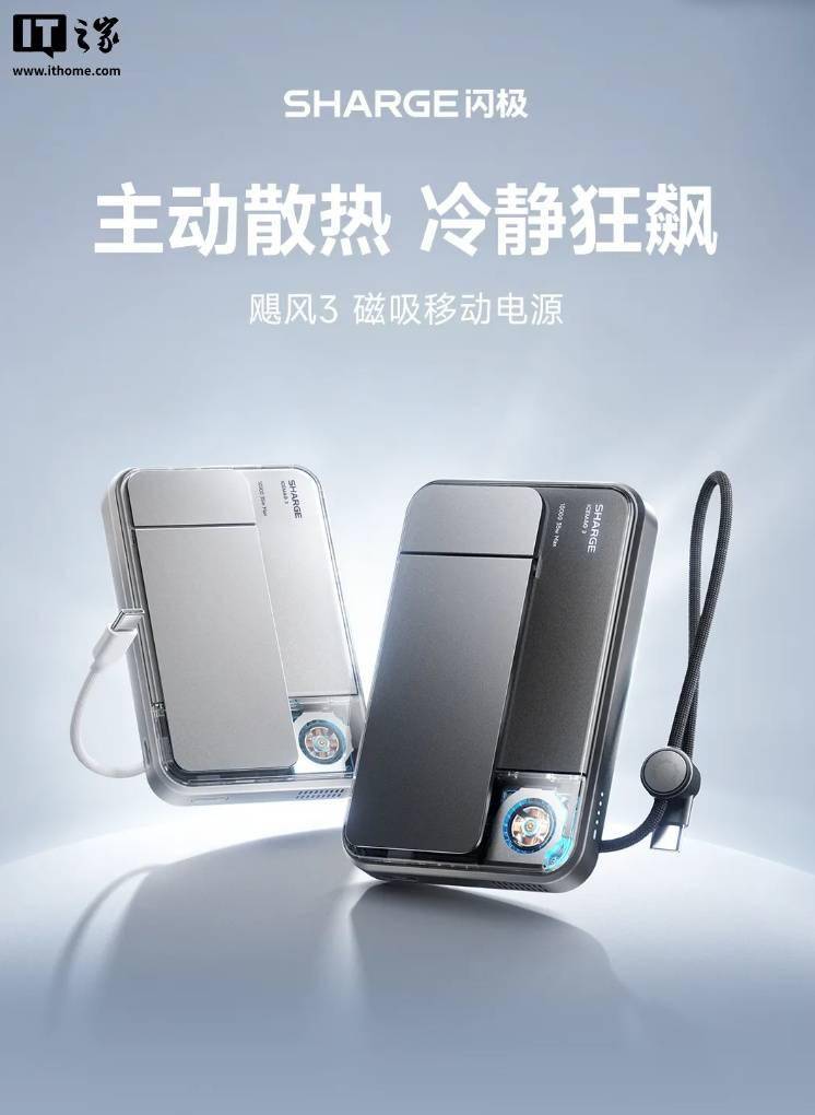 IT之家 1 月 7 日消息,闪极今日公布了一款“飓风 3”磁吸移动电源,支持给手机 25W 无线充电。