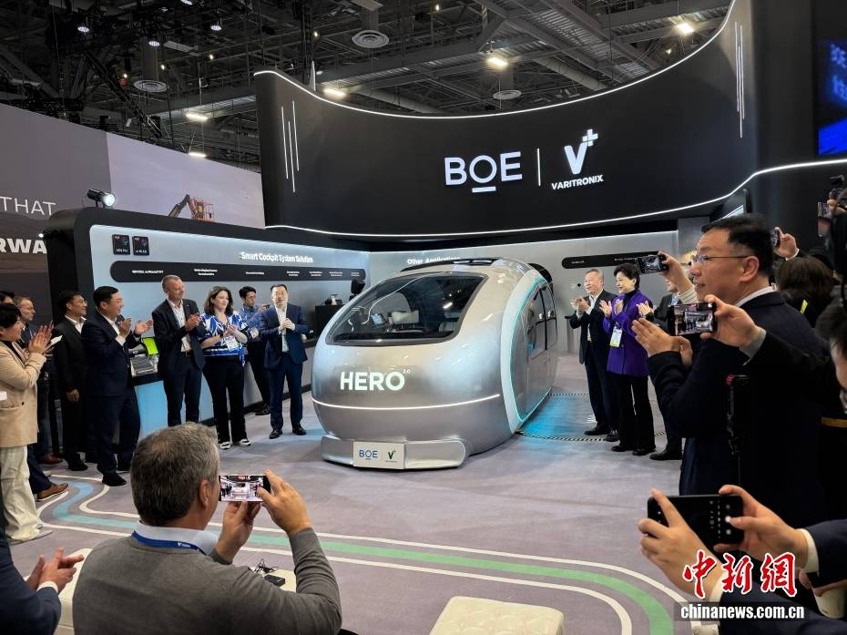 当地时间1月6日,2026年美国消费电子展(CES)在内华达州拉斯维加斯开幕,众多中国企业携前沿技术新品亮相。图为京东方展台举行全球首发“HERO 2.0智能座舱”仪式。中新社记者 张朔 摄