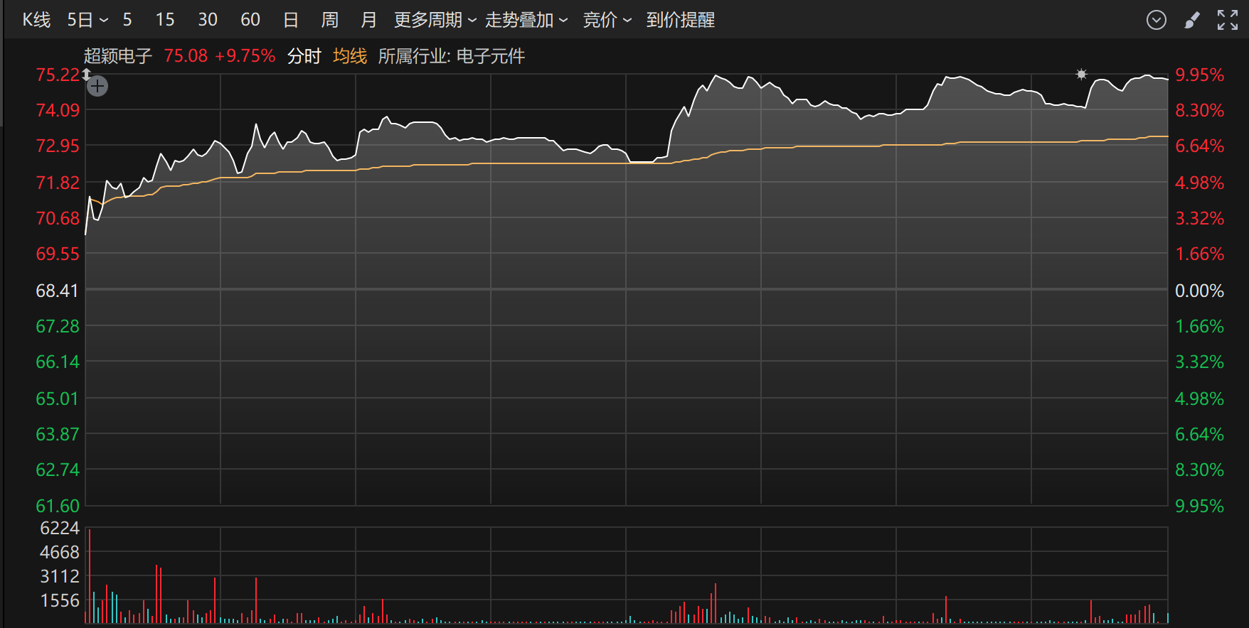 1月7日,超颖电子股价大涨9.75%,报75.08元/股,市值达328.1亿元。