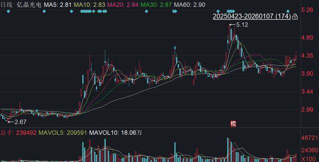 二级市场上,截至1月7日收盘,亿晶光电上涨0.70%报4.31元/股,总市值约51.02亿元,近一年公司股价累计上涨约46%。