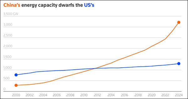 美国《华尔街日报》上月也在报道中指出,美国发明了最强大的AI模型,也掌握着最先进的芯片,但中国在全球AI竞赛中拥有一张“王牌”——世界上最大规模的电网。2010年至2024年间,中国的发电量增长超过了世界其他地区的总和。中国2024年的发电量是美国的2倍多,一些中国数据中心现在的电费不到美国数据中心的一半。