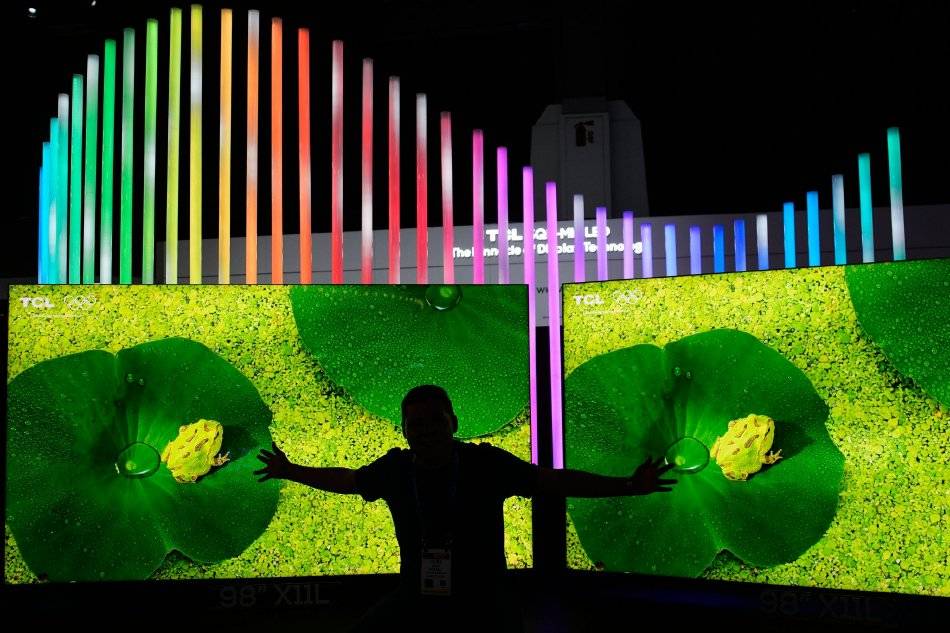 当地时间2026年1月6日,美国拉斯维加斯,拉斯维加斯会展中心(LVCC),CES开幕日,中国企业长虹(CHiQ)展台展示了一款Mini LED电视。