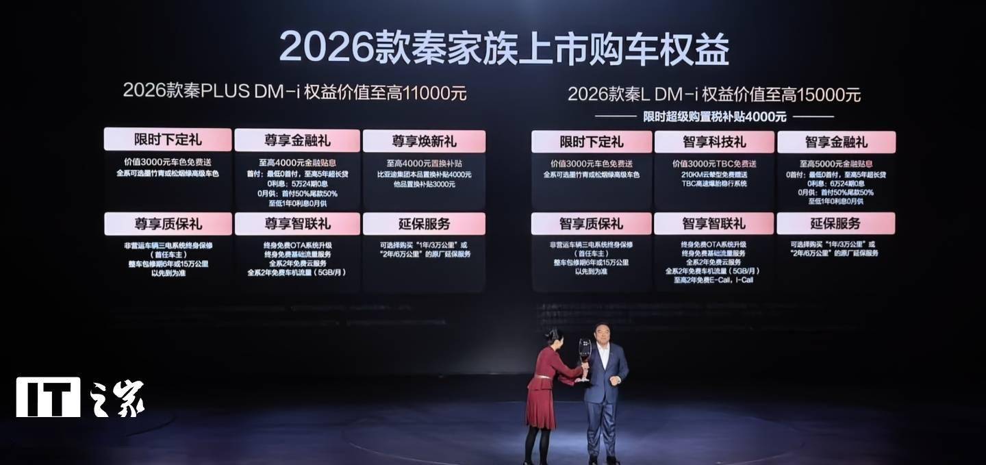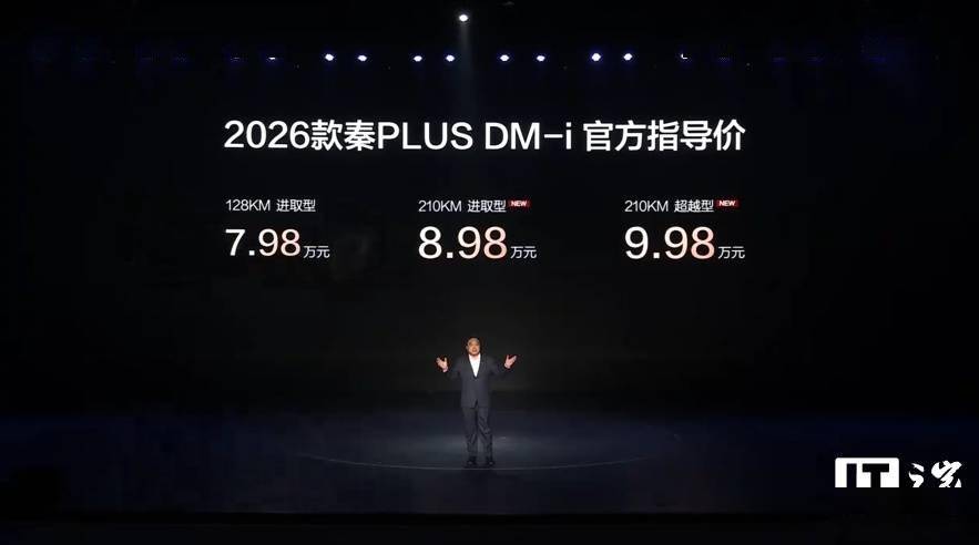 IT之家 1 月 8 日消息,2026 款比亚迪秦 PLUS DM-i 今晚发布,共推出三款车型,售价 7.98 万元起。