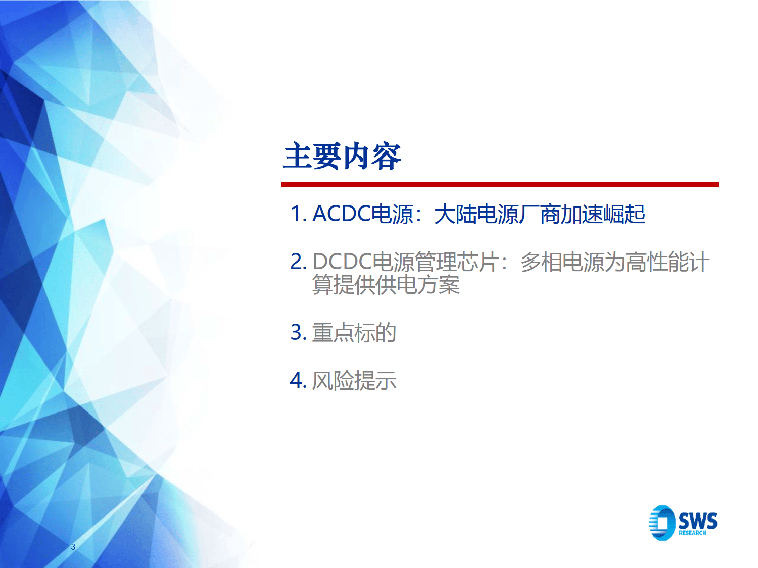 报告聚焦 AI 电源两大核心方向 ——ACDC 模块及电源管理芯片,结合市场规模、技术趋势与重点企业布局展开分析,核心内容如下: