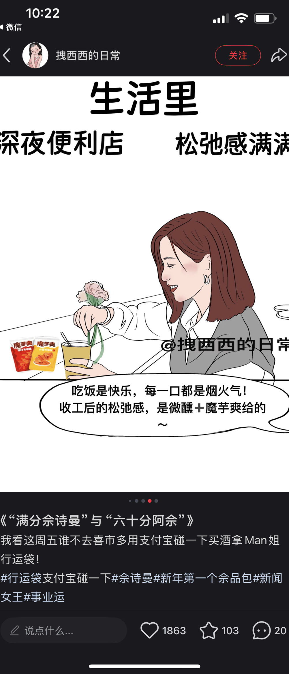 佘诗曼的社交媒体内容下,网友许愿许愿支付宝合作的内容截图