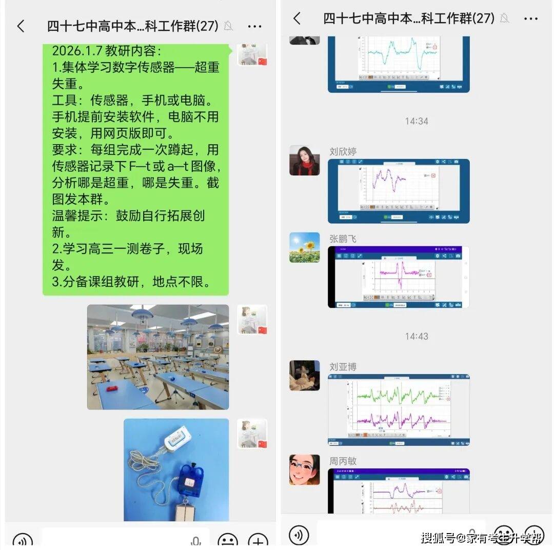 为确保培训效果扎实落地,此次活动设置了实操环节,以“超重与失重现象探究”为必做任务,要求每位教师独立完成传感器调试、数据采集和软件分析等全流程操作。同时,教研组将数字化传感器使用、智能小车实验设计、数据处理平台操作等内容纳入教研作业,通过“学—练—考—评”闭环,提升教师熟练掌握数字化实验技能。现场老师们分组协作、互帮互学,在实操中解决仪器校准、数据同步、误差分析等实际问题,形成了浓厚的研讨氛围。