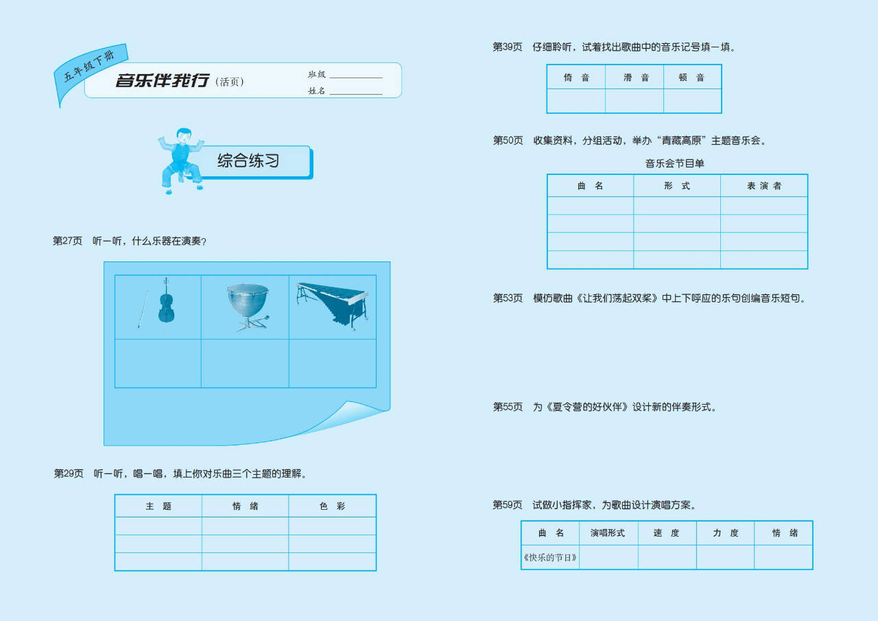 接力版五年级音乐下册电子课本图片版在线阅读