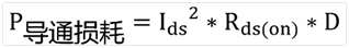 导通损耗指的是MOS 管完全导通的损耗,这个相对来说最简单,导通后Vgs不变的情况下,导通电阻恒定,知道了通过的电流,开关的占空比D,那么损耗就可以用下面的公式计算:
