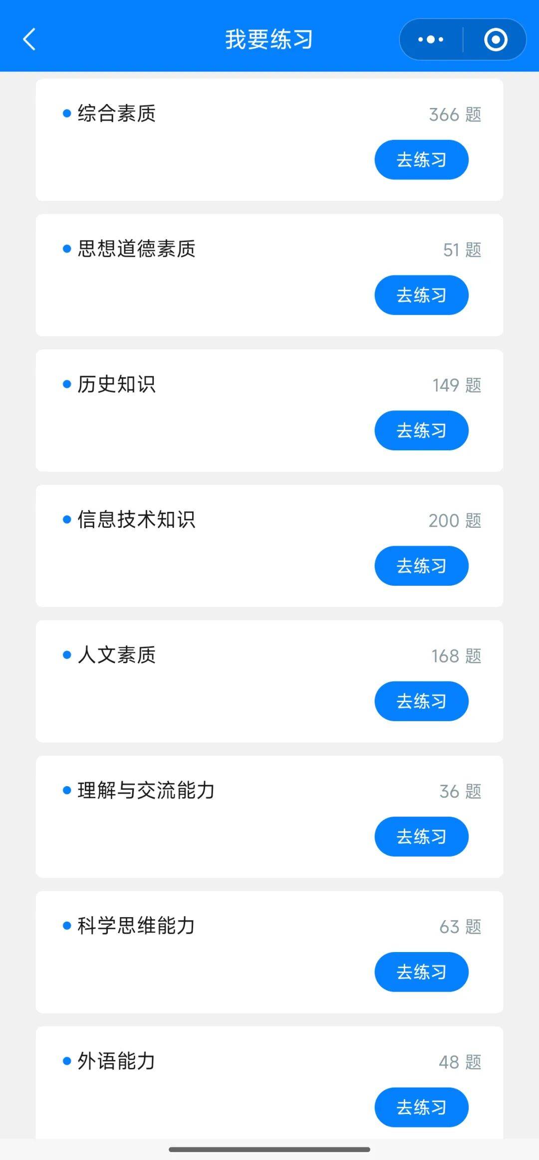 详细的科目,知识点分模块练习,从专项练习、真题演练、基础综合到冲刺练习,对练习模式进行细致分类,满足学员练习需求。