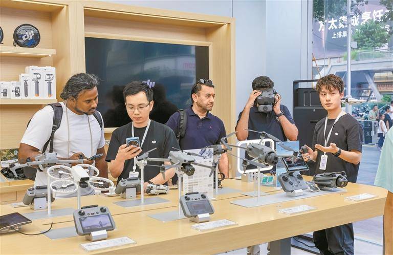 作为“中国电子第一街”“新质生产力策源第一街”,华强北背后连接着深圳、东莞、佛山、中山等地完整的制造体系。大量广东制造的新产品在这里上新。据统计,华强北商圈年交易额超4800亿元,其中智能终端、无人机、机器人等新质生产力相关产品占比持续提升,成为消费增长的重要支撑。