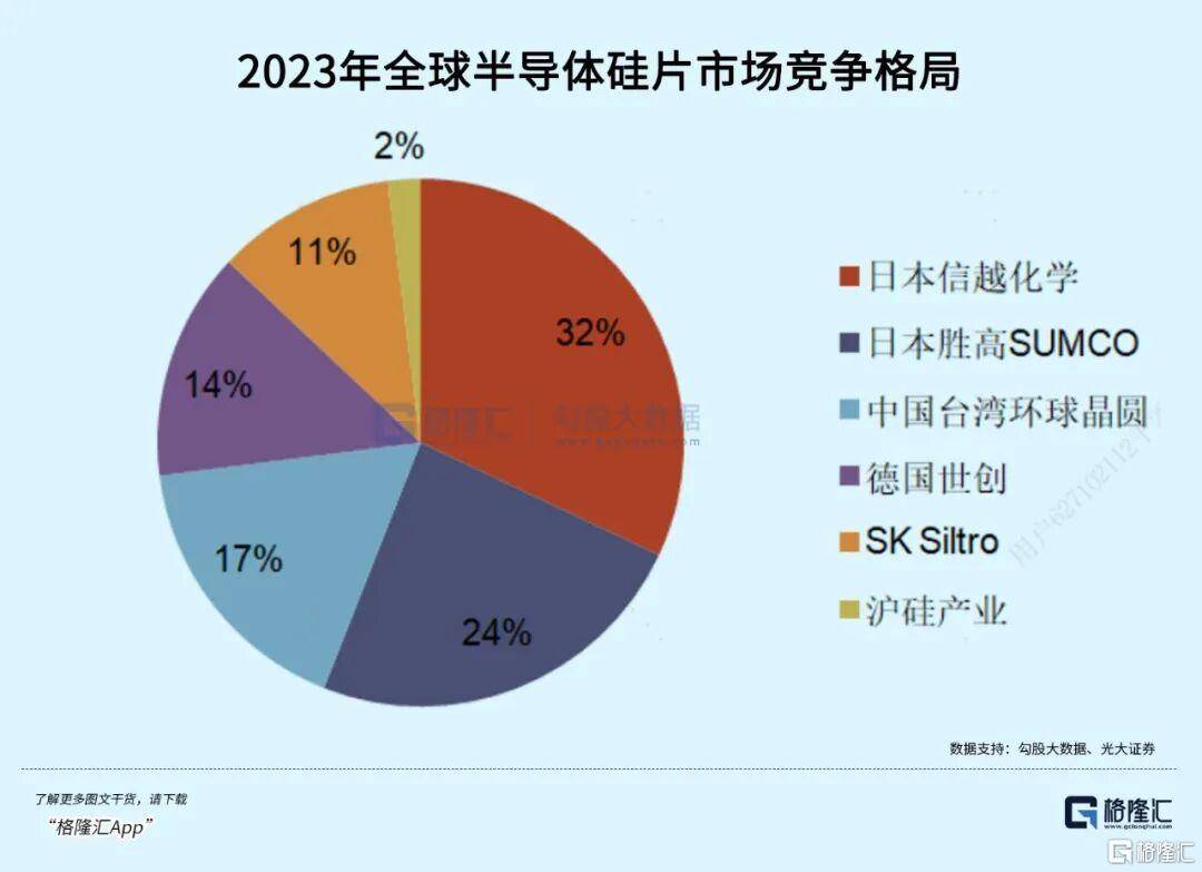 硅片占半导体材料市场份额37%,是绝对核心赛道,全球呈现“四巨头垄断”格局。2023年日本信越化学、胜高两大巨头合计占比56%,叠加环球晶圆、Siltronic,前四大厂商市占率超80%,行业集中度极高。
