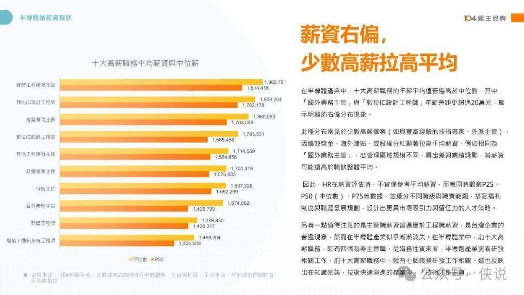 薪资格局方面,技术密集型岗位领跑行业,硬件工程研发主管、类比IC设计工程师、经营管理主管稳居高薪前三,非主管职中类比IC设计工程师年薪中位数高达178万元。2025年主管职中专案业务主管涨幅19.9%,非主管职中其他特殊工程师涨幅21.1%,技术与业务双向强势。