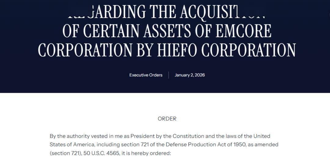 2026年1月2日,特朗普总统依据《1950年国防生产法》第721条签发行政命令,追溯否决中国背景公司HieFo对美企EMCORE部分资产的收购,并要求其在180日内完成剥离。