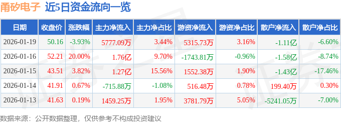 证券之星消息,截至2026年1月19日收盘,甬矽电子(688362)报收于50.16元,下跌3.93%,换手率8.11%,成交量33.29万手,成交额16.81亿元。