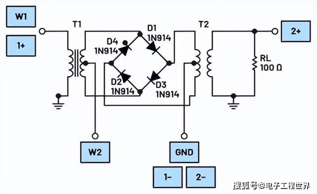 环形调制器中二极管的方向不得与二极管桥式整流器的方向混淆。它们可能呈现类似的环形,但环形调制器的所有二极管都朝顺时针或逆时针方向,而桥式整流器的二极管则朝左或右。