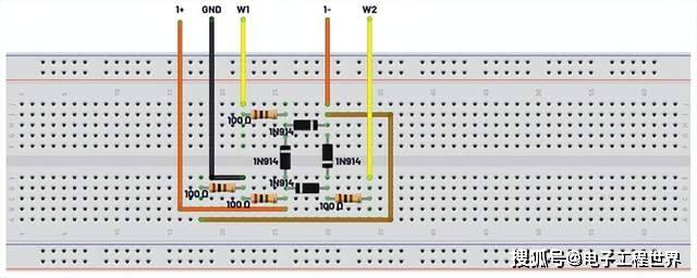 图8.简化的无变压器二极管环形调制器的试验板连接