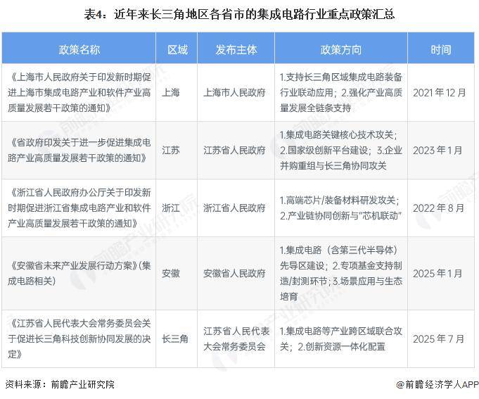4、多项政策支撑长三角地区成为集成电路行业发展核心