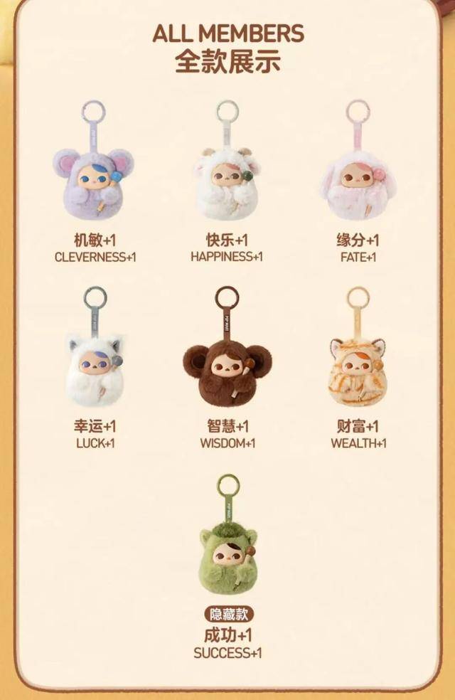 每款盲盒还对应特定吉祥寓意标签如“财富+1”“快乐+1”“智慧+1”等,精准切中年轻群体的情绪解压需求。